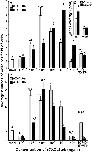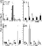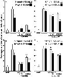 Figure 4. The rCXCL8a and rCXCL8b elicit distinct chemotaxis responses in tadpole and adult granulocytes. (A,B) Medium or increasing concentrations of rCXCL8a or rCXCL8b were loaded into bottom chemotaxis chamber wells and (A) tadpole or (B) adult frog granulocytes (105 cells/well) were loaded into top wells, separated by 5 μm pore filters. After 3 h of incubation, the filters were stained with Giemsa, mounted bottom side up and the numbers of migrating cells per field of view enumerated. Cells from three individual animals were used for each chemokine concentration (N = 3) and the highest tadpole (10â4 ng/ml of rCXCL8a; 101 ng/ml of rCXCL8b) and adult frog (10â6 ng/ml of rCXCL8a; 10â4 ng/ml of rCXCL8b) granulocyte chemotactic activities were confirmed in two additional, independent experiments and the results combined and presented here (N = 9). Chemokinesis was measured by adding respective concentrations of rCXCL8 or rCXCL8b that elicited maximal cell migration, to both lower and upper chambers. (C) Tadpole and adult frog gene expression of Cxcr1 and Cxcr2 relative to Gapdh. All results are presented as means + SEM. Above-head letters denote statistical designations: experimental groups described by distinct letters are statistically different (P < 0.05) while those marked by the same letters are not.