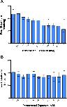Xenopus laevis embryos were exposed to 0-5 mM paracetamol from the age of stage 38, and harvested at stage 45 (A, n = 10) or at stage 41 (B, n = 3). The amount of free GSH (nmol/mL) was measured inside the embryos and normalised to the amount of protein (mg/mL). An ordinary one-way ANOVA compared each exposure group to the group exposed to Xenopus media alone (0 mM). For the embryos exposed until stage 45 (A), the amount of free GSH for 3, 3.5, 4 and 4.5 mM paracetamol exposure groups was statistically significant compared to the group exposed to Xenopus media only (P < 0.05). The 5 mM paracetamol exposure group was also statistically significantly different (P < 0.01). There was no significant difference between treated and untreated embryos that were harvested at stage 41 (B).