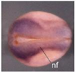 rpsa (ribosomal protein SA) gene expression in Xenopus laevis embryo, assayed via in situ hybridization, NF stage 16, dorsal view, anterior left. |