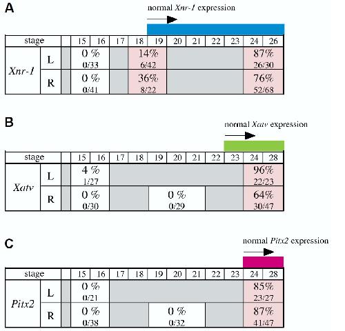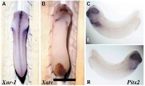 of Xnr-1, the embryo ceases left-handed Pitx2 expression (C, viewed from