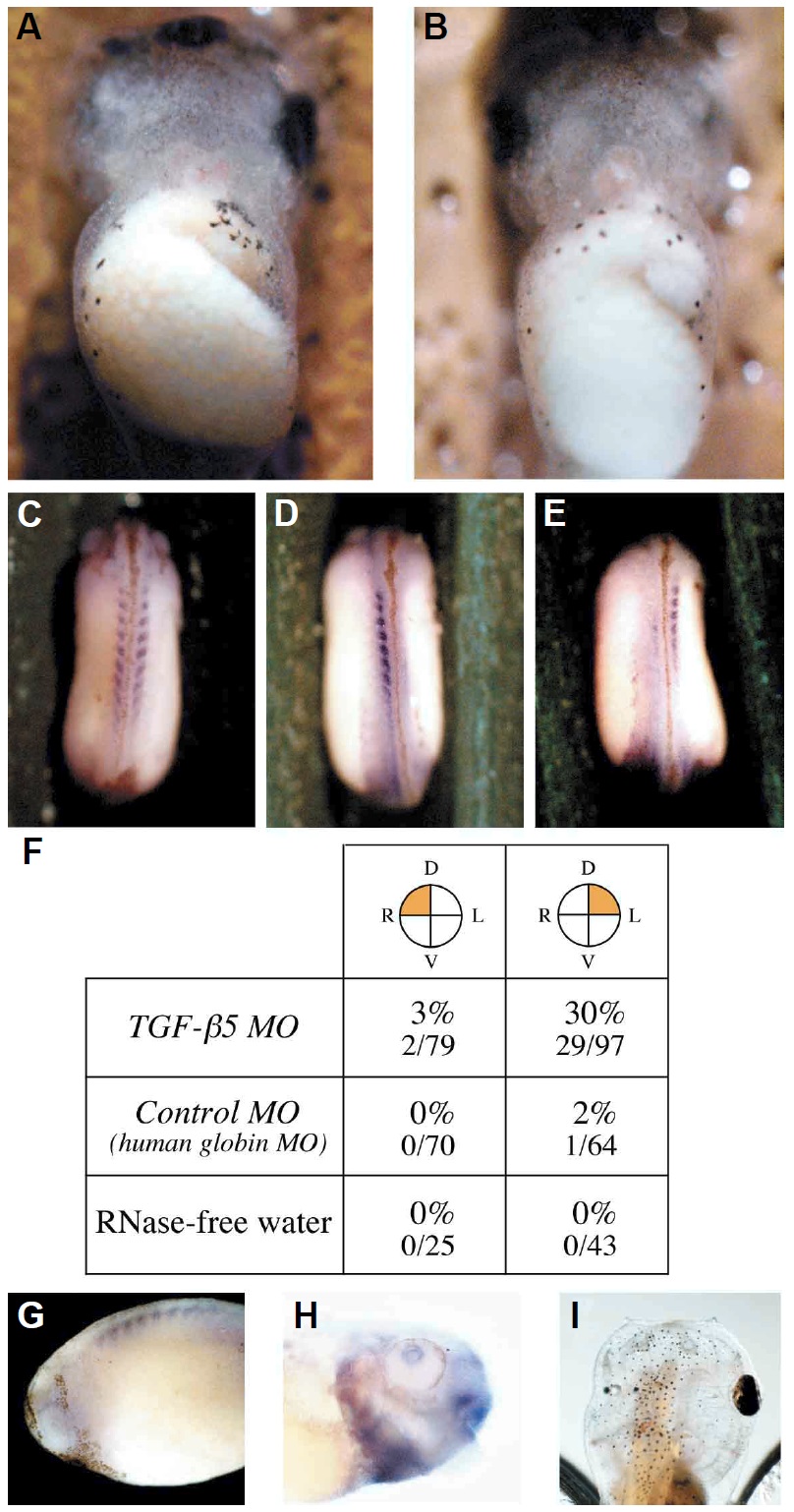 of TGF-β5 MO elicited significant left-right reversal. (G,H,I) TGF-β5 expression