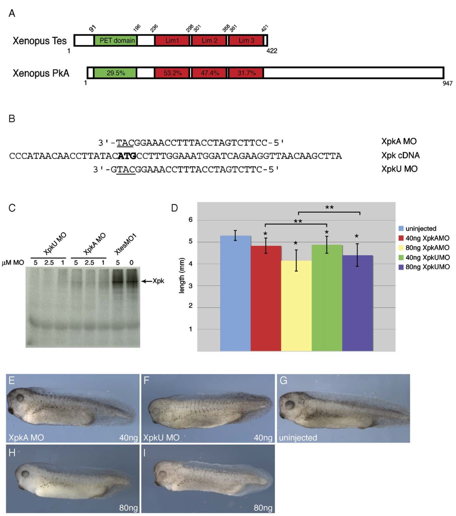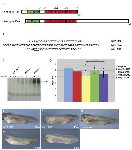 embryos. (EâI) Phenotypes of embryos injected with Xpk MO. Embryos were injected with either 40 ng of (E) XpkA MO, (F) XpkUMO or 80 ng of (H) XpkA MO or