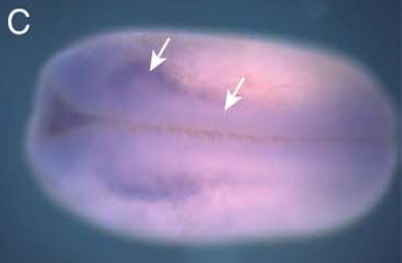 Stage 18; arrows point to strong expression of Xtes next to the neural folds. (D)