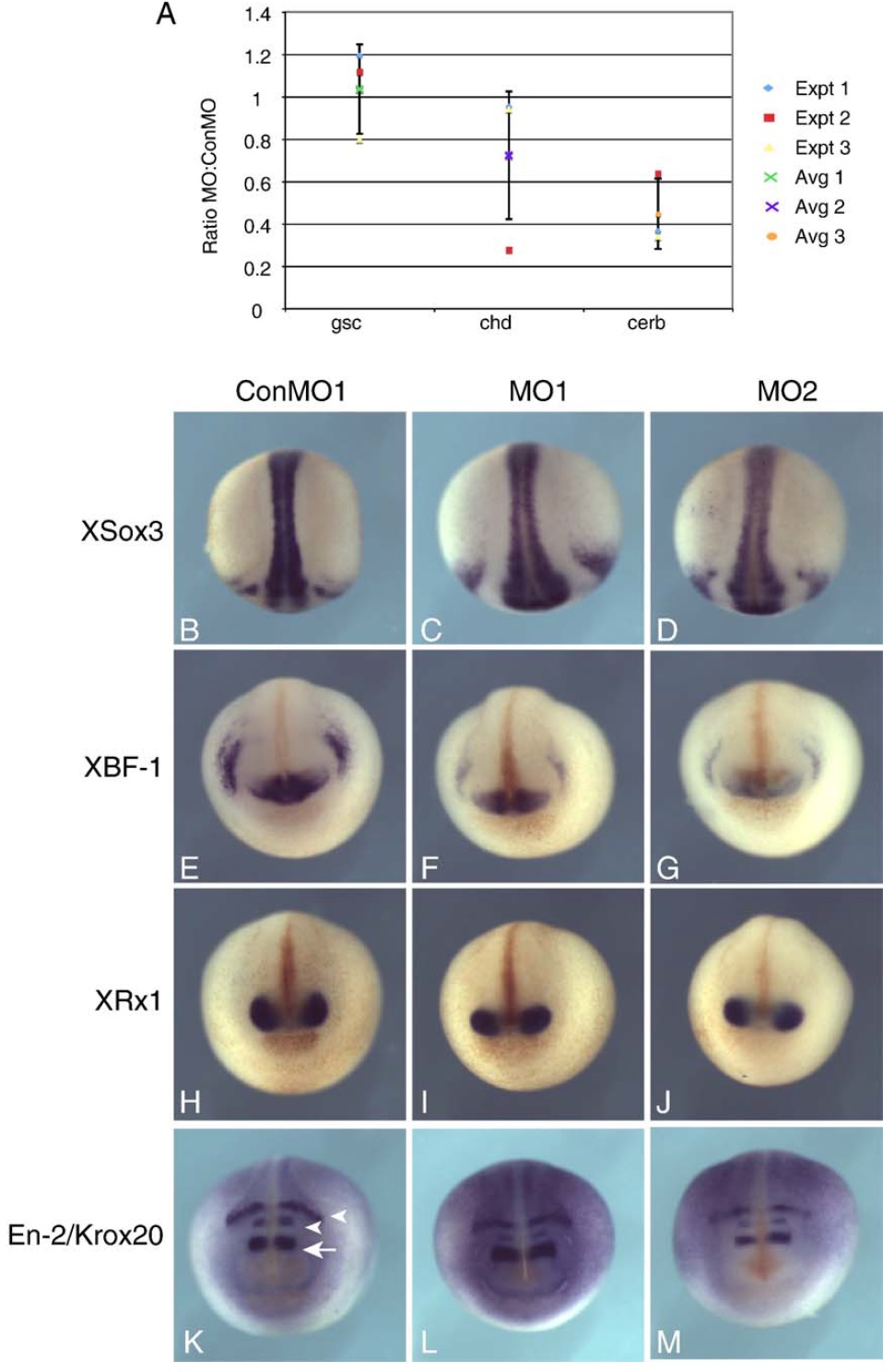 embryos and those injected with the control MO. (BâM) Xtes depletion does not alter anterior neural patterning. Embryos were injected with either (B, E, H, K) Con