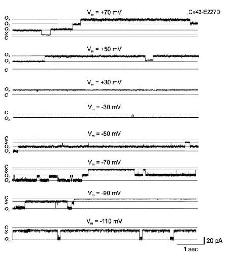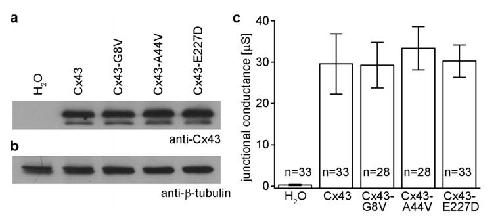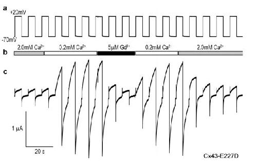 Bukauskas, Gating properties of gap junction channels assembled from connexin43 and connexin43 fused with green fluorescent protein. 2001, Pubmed