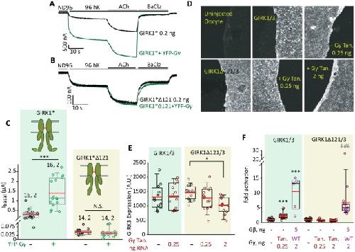 Kahanovitch, Recruitment of Gβγ controls the basal activity of G-protein coupled inwardly rectifying potassium (GIRK) channels: crucial role of distal C terminus of GIRK1. 2014, Pubmed , Xenbase