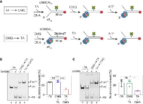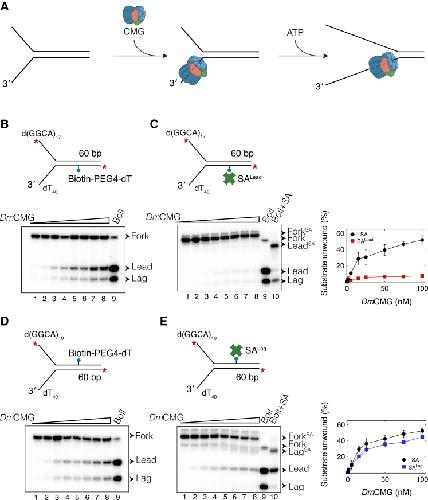 Langston, Action of CMG with strand-specific DNA blocks supports an internal unwinding mode for the eukaryotic replicative helicase. 2017, Pubmed