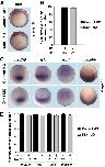 Fig. 4. Reduced number of terminally differentiated cardiomyocytes upon loss of Dkk1. A. Sections of embryos are shown stained for cardiac troponin T (red) to label cardiomyocytes and phosho-histone H3 (PH3, green) lo mark proliferating cells and counterstained with DAPI (blue) to highlight nuclei at the stages indicated. Yellow arrowheads indicate proliferating cardiomyocytes positive for cardiac troponin and phosho-histone H3. B. Cardiac troponin T positive cardiomyocytes were quantified on continuous serial sections of stained embryos. Embryos bilaterally injected with Dkk1 MO showed reduced number of cardiomyocytes at the stages indicated. C. The mitotic index (MI) as defined by the percentage of phosho-histone H3 positive cardiomyocytes is not affected upon Dkk1 MO injection. N = number of independent embryos counted. *p < 0.05, **pâ¯<â¯0.01, with Mann-Whitney rank sum test. Scale bar, 100â¯Î¼m. |