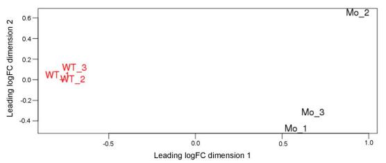 Supplementary Figure 2. PCA plot illustrating the significant differences in the transcriptome of Etv6-deficient (etv6 MO) somites when compared to that of wild type (WT) somites. Three independent biological replicates were used for each condition. |