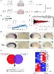 Figure 2 Identification of Etv6 direct transcriptional targets in the somites. a Experimental design. RNA-seq was performed on wild type (WT) and Etv6-deficient (etv6 MO-injected embryos) somite explants dissected from stage 22 embryos. Differentially expressed genes (DEGs) were identified by comparing the transcriptome of these tissues. b Spearman correlation analysis on triple biological RNA-seq replicates. c MA plot (magnitude of the difference versus amplitude of the signal) showing the fold-change in gene expression of all genes in WT versus Etv6-deficient somites (log2FC) compared to their expression levels (log2CPM). Black dots, non-significant change; red dots, differentially expressed genes (DEGs). The number of positively and negatively regulated DEGs is indicated. d WISH showing the expression of DEGs in stage 22 WT and Etv6-deficient embryos. Meox2 expression is upregulated in the somites (arrows) in Etv6-deficient embryos whereas expression of crim1, sox18 and vegfa is downregulated. Note that vegfa expression in the hypochord is unaffected (arrowheads). Embryos are shown in lateral view with anterior to the left and dorsal to the top. Numbers in top right corner indicate the number of embryos exhibiting the phenotype pictured (scale bars: 0.5âmm). e The intersection between DEGs and genes harbouring Etv6 ChIP-seq peaks in their TSS region reveals 540 putative direct target genes. f Foxo3 and klf4 (arrows), known transcriptional regulators of vegfa, are amongst the 18 TFs and chromatin modifiers identified as potential direct transcriptional targets of Etv6 |