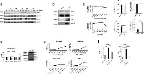 Fig. 3. Analysis of transporters and inflammatory factors. a Protein levels of transporters OAT1, OAT3 and URAT1 were determined using immunoblot analysis in kidney cell lines. b After treatment of LLC-PK1 cells with PO and K-25 for 24 h, cell viability was measured using the cell viability assay. c Protein levels of transporters OAT1, OAT3, GLUT9 and URAT1 were determined using ELISA and immunoblot analysis in PO-induced LLC-PK1 cells. d Activation of NGAL and KIM-1 by IL-1α. The protein levels in IL-1α-treated LLC-PK1 cells were detected using ELISA. e LLC-PK1 cells were stimulated with IL-1α (10 ng/mL) with or without pretreatment with K-25 (0.5 mg/mL). f After 24 h-incubation, NGAL and KIM-1 levels were measured using ELISA. Values represent mean ± standard error of the mean. **p < 0.01, compared to the IL-1α control. The statistical significance (*p < 0.05, **p < 0.01, ***p < 0.001) was determined using ANOVA with Bonferroni correction