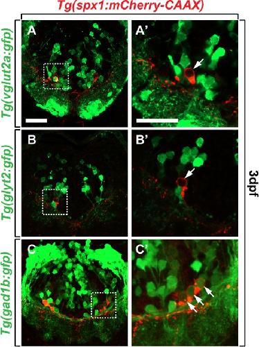 Higashijima, Distribution of prospective glutamatergic, glycinergic, and GABAergic neurons in embryonic and larval zebrafish. 2004, Pubmed