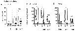 Figure 1. Effects of infection with attenuated knockout (KO) FV3 recombinant or bacterial stimulation on iVα6 T cell response. Peritoneal leukocytes (PLs) were collected at 1 dpi from adult frogs infected with 1 × 106 PFUs of WT-FV3 or ∆64-FV3, or 100 µl heat-killed (HB) E. coli. (A) Genome copy number using absolute qPCR with primers against FV3 DNA polymerase II. (B) XNC10 relative gene expression and (C) iVα6-Jα1.43 relative gene expression. Gene expression was determined relative to an endogenous control (GAPDH) and fold changes were calculated using the unstimulated sample (injected with equivalent volume of APBS) collected at the same time point. Data are pooled from three independent experiments with n = 4–5 animals in each experiment and each dot represents an individual animal. The line intersecting the y-axis at 0 represents the unstimulated control that the fold changes of the treatments are in relation to; (#) p < 0.05 significant differences compared to unchallenged (APBS) injected controls; (*) p < 0.05 and (***) p < 0.001 statistically significant differences between the indicated groups (one way ANOVA and Dunns’s multiple comparison test). |