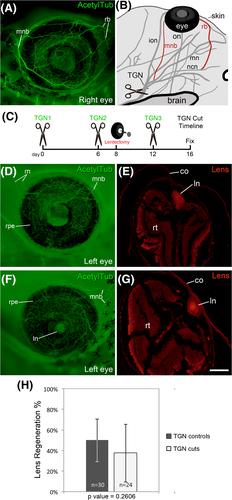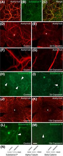 BACKGROUND: Numerous sensory nerves in the cornea contribute to normal tissue homeostasis. Interestingly, cells within the basal corneal epithelium can regenerate new lenses in the frog, Xenopus. In this study, we investigated whether cornea sensory nerves or their neuropeptides are important for supporting cornea-lens regeneration. RESULTS: Attempts to sever the trigeminal nerve trunk, which provides sensory nerve branches to the cornea, did not inhibit lens regeneration. However, using this approach we found that it was not possible to completely disrupt sensory innervation, as these nerves are able to quickly regenerate back to the cornea. On the other hand, attenuation of neuropeptide levels with capsaicin was found to significantly inhibit lens regeneration, as visualized by a reduction of Substance P. These treatments also led to a reduction of cornea sensory innervation. Interestingly, inhibition of the Substance P-preferred receptor NK-1 with Spantide II did not affect lens-regeneration rates. CONCLUSIONS: This study provides evidence that cornea nerves support cornea-lens regeneration, which could occur through the release of various neurotrophic factors. Substance P, however, does not appear to be the critical component of this signaling pathway. Further studies are needed to investigate what role other known neurotrophic factors may play in this process.