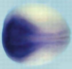 lemd3 (LEM domain containing 3 gene expression in Xenopus laevis embryo via in situ hybridization, NF stage 14, dorsal view, anteriorleft.