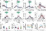 Figure S6. Additional data for molecular perturbation experiments, related to Figure 5 (AâF) Doubly-inhibited spindle data. Motion amplitude profiles (A, C, E) and the local effective stiffness (B, D, F), analyzed for the short spindle axis and for forces applied near the pole (A, B), at the middle of the spindle half (C, D), and near the equator (E, F). (G, H) Dynein-inhibited spindle data. Motion amplitude profile (G) and the local spindle stiffness (H), analyzed for force applied near the spindle equator. (IâO) Kinesin-5 inhibited spindle data. (I) Representative confocal images of spindles treated with monastrol at indicated concentrations. All scale bars are 10 µm. (J) Average flux rate versus monastrol concentration. (K) Overall spindle length versus monastrol concentration. Box plots are SD (bars), 25th and 75th percentiles (box ends), median (center bar), and mean (cross). Data are from n = 6, 5, and 6 spindles for control, 10 µM monastrol, and 20 µM monastrol, respectively. (LâO) Short-axis motion amplitude profiles (L, N) and the local effective stiffness (M, O), analyzed for forces applied at the pole (L, M) and the equator (N, O). Dataset analyzed are the same as in Fig. 5, panels BâH (double inhibition), JâK (dynein inhibition), and MâP (kinesin-5 inhibition). Red and black traces in each amplitude profile indicate data for test and control spindles, respectively. *p<0.05, **p<0.01, MannWhitney U-test. n.s., not significant. |
