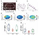 Figure S2. Particle image velocimetry (PIV) analysis on the oscillatory force perturbation experiment, related to Figures 1 and 2 (A) Schematic picture of PIV analysis, performed for speckle images acquired in the oscillatory force perturbation experiment. In the analysis, square grids (1.68 µmÃ1.68 µm) are overlaid onto a spindle, which is indicated by the white ellipse. Red color indicates speckle signal. PIV calculates the spatial correlation between two successive images in the time-lapse, yielding the average velocity of multiple speckles at the center of each grid. The x- and y-coordinates are the spindleâs long and short axis, respectively. (B, C) Velocity field (vx(t), vy(t)) of speckle movement that arose in response to an applied oscillatory force (frequency: 0.1 Hz) was analyzed by PIV image processing. The time-evolution of vx(t) (B) obtained in each PIV window was converted to displacement time course x(t) (C), according to x(t + dt) = x(t) + vx(t)dt, at the resolution of dt = 1 s. The amplitude of speckle motion response A was then obtained by fitting the calculated x(t) (open circles) to the sinusoidal curve (solid line), a0 + a1t + A sin(Ït + θ), where fitting parameters a0 and a1 are for the initial position and flux velocity, respectively. (DâF) The spatial profile of amplitude A was drawn as a two-dimensional heat map. Warmer color represents larger displacement along the long spindle axis. Typical heat map is shown for each case, in which force was applied near the spindle pole (D), at the middle of the spindle half (E), and near the equator (F). (G, H) Local effective stiffness at each spindle region (pole, middle, equator) was estimated in the amplitude profile within ±5 µm from the peak. The stiffness values (filled circles) estimated for the long (G) and short spindle axis (H) are displayed with box plots; each box extends from the 25th to 75th percentiles, with a line at the median. |