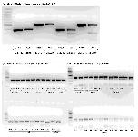 Supplemental Figure 6 (a) Full - DNA gel showing the PCR product for each l1cam F0 CRISPR mutant and control, before and after cutting with T7 endonuclease I. (b) Full - DNA gel showing the PCR product for each crb2 F0 CRISPR mutant and control, before and after cutting with T7 endonuclease I. |