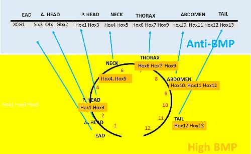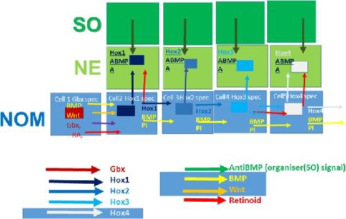 Bardine, Vertical signalling involves transmission of Hox information from gastrula mesoderm to neurectoderm. 2014, Pubmed , Xenbase
