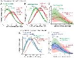 Figure 2—figure supplement 3. Self-similarity in the architecture of branched networks.(A–B) Positions of the minus-ends were recorded in simulated branched networks. The distances of all minus-ends were calculated from the origin, normalized by seed MT’s length, and the resulting probability distribution of was plotted in (A). The distances of all plus-ends were calculated from the origin, normalized by the largest distance (set to 1), and the resulting probability distribution of was plotted in (B). Data was obtained for roughly 250 branched networks containing 30, 60 or 120 MTs. Total number of measurements for single-step model (red): 30 MTs (n = 7535), 60 MTs (n = 14234), 120 MTs (n = 22655), and for sequential model (green): 30 MTs (n = 7602), 60 MTs (n = 15189), 120 MTs (n = 28300). (C) Tubulin intensity in simulated branched networks was measured against distance from the origin, normalized by the longest distance (set to 1). Data for obtained for roughly 250 branched networks each containing 30 or 100 MTs. Shaded regions depict the standard deviation in intensity measurements. (D) Positions of plus-ends were obtained in branched networks. Distances of all plus-ends was calculated from the origin, normalized by the largest distance (set to 1), and the resulting probability distribution of was plotted. For experiments, 17 branched networks generated were imaged over time and their plus-end distribution was measured when each network contained 10–30 EB1 comets (cyan, n = 8624), and 35–55 EB1 comets (blue, n = 17676). For simulated networks, data was pooled for 10–60 MTs in 250 branched networks each simulated using the single-step model (red, n = 633517) and sequential model (green, n = 495794). Shaded regions depict the 95% confidence intervals. The experiments and analyses were repeated with two independent extract preparations and representative experiment was reported. See Figure 2—figure supplement 2 and Materials and methods for measurement procedure. (E) Tubulin intensity in branched networks was plotted against distance from the origin, normalized by the longest distance (set to 1). Snapshots of branched networks were imaged at early time-point (10 min, cyan), and the same networks were imaged again later (14 min, blue). All measurements were pooled for 59 branched networks generated with one Xenopus extract preparation, and the experiments and analyses were repeated with two independent extract preparations. For simulations, data was pooled for 50–250 MTs in roughly 250 branched networks each simulated using the single-step model (red) and sequential model (green). Shaded regions depict the standard deviation in intensity measurements. See Figure 2—figure supplement 2 and Materials and methods for measurement procedure. |
