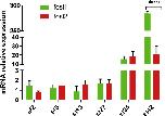 ???displayArticle.abstract??? Fos-like antigens (Fosl) including Fosl1 and Fosl2 exclusively heterodimerize with Jun members to form AP-1 complex, thereby participating in various cellular progresses including cell cycle regulation. However, expression patterns of these two genes during embryonic development remains largely unknown. In the present study, both temporal and spatial expression patterns of fosl1 and fosl2 were examined during embryonic development of Xenopus tropicalis. Real-time quantitative PCR results showed that the expression of the two genes was increased from stage 2 to stage 42. However, expression level of fosl1 is much higher than that of fosl2 at stage 42. Whole-mount in situ hybridization showed that fosl1 was expressed in eyes, branchial arch, notochord, otic vesicle, and liver. However, fosl2 was expressed in lungprimordium from stage 34 to stage 38, in addition to the moderate expression in eyes and branchial arch at stage 42. Thus, the developmental expression patterns of these two fosl genes is different in Xenopus embryos. These results provide a basis for further functional study of these two genes.