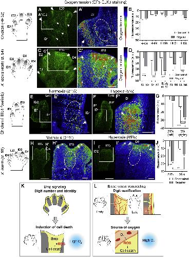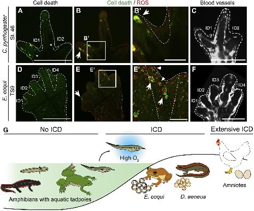 Figure 2. Atmospheric Oxygen Levels Regulate Interdigital Cell Death in Tetrapods
