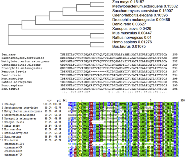 Fig. 2. Cysteine residues in X. laevis ATP-α-F1are evolutionary conserved. Top. Phylogenetic tree of the common model organisms selected. Middle. Multiple sequence alignments of ATP-α-F1 derived from Clustal Omega (an open access online tool: https://www.ebi.ac.uk/Tools/msa/clustalo/). Bottom. Amino acid mark-up showing conserved cysteine residues in yellow. C294 occurs earlier in X. laevis due to a small deletion (see main text). Neighbouring amino acids surrounding C244 and C294 are highly conserved across phyla. (For interpretation of the references to colour in this figure legend, the reader is referred to the Web version of this article.)