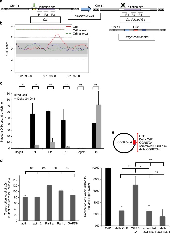 Involvement of G-quadruplex regions in mammalian replication origin activity.