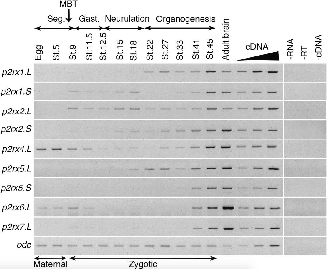 Genes referenced: gast odc1 p2rx1 p2rx2 p2rx4 p2rx5 p2rx6 p2rx7