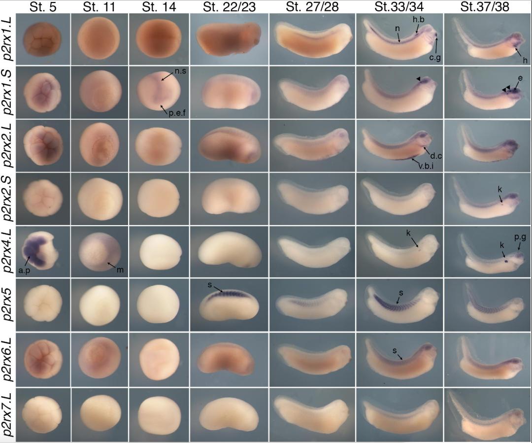 Comparative Embryonic Spatio-Temporal Expression Profile Map of the Xenopus P2X Receptor Family.
