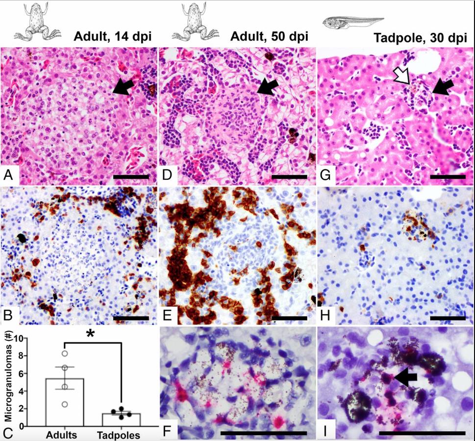 Distinct Host-Mycobacterial Pathogen Interactions between Resistant Adult and Tolerant Tadpole Life Stages of Xenopus laevis.