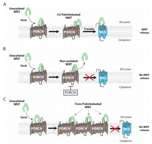 Stereoselective fatty acylation is essential for the release of lipidated WNT proteins from the acyltransferase Porcupine (PORCN).