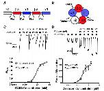 SI 1. (A) RNA gel of concatenated receptor showing single RNA band at the expected size of ~7.5 kb. (B) Western blot with uninjected oocytes, oocytes injected with loose subunits or the concatenated construct. Concatenated receptor is translated at the expected size without any additional fragments. |
