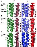 indicate the location of mutations on the first 2 subunit, and red circles, purple squares, and blue circles indicate location of mutations on the second, fourth,