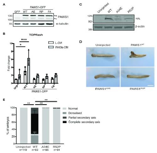 Figure 3. . Pathogenic PPK PAWS1 point mutants impact canonical Wnt signalling.