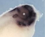 ptch1 (patched 1) gene expression in Xenopus laevis embryo, assayed via in situ hybridization, NF stage 41, head region only, lateral view, anterior right, dorsal up. |