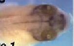 ptch1 (patched 1) gene expression in Xenopus laevis embryo, assayed via in situ hybridization, NF stage 41, head region only, dorsal view, anterior right. |