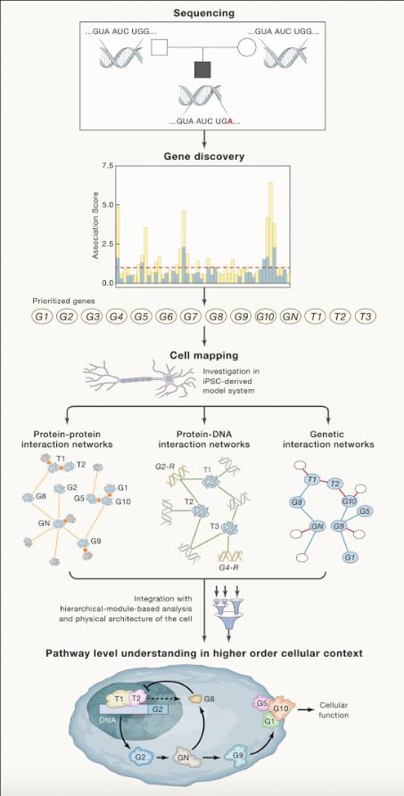 Although gene discovery in neuropsychiatric disorders, including autism spectrum disorder, intellectual disability, epilepsy, schizophrenia, and Tourette disorder, has accelerated, resulting in a large number of molecular clues, it has proven difficult to generate specific hypotheses without the corresponding datasets at the protein complex and functional pathway level. Here, we describe one path forward-an initiative aimed at mapping the physical and genetic interaction networks of these conditions and then using these maps to connect the genomic data to neurobiology and, ultimately, the clinic. These efforts will include a team of geneticists, structural biologists, neurobiologists, systems biologists, and clinicians, leveraging a wide array of experimental approaches and creating a collaborative infrastructure necessary for long-term investigation. This initiative will ultimately intersect with parallel studies that focus on other diseases, as there is a significant overlap with genes implicated in cancer, infectious disease, and congenital heart defects.