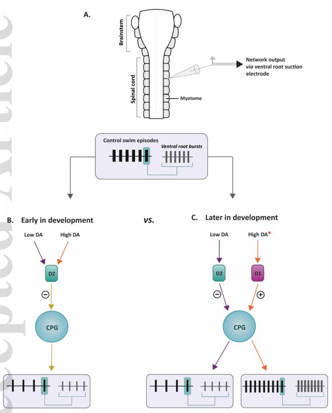 Developmental stage-dependent switching in the neuromodulation of vertebrate locomotor central pattern generator networks.