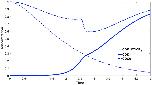 Figure 7. Comparison between concentration of CDK1/CYCBA in the absence and presence of CDC6. Solid lineâsystem with CDC6; dotted lineâsystem without CDC6.