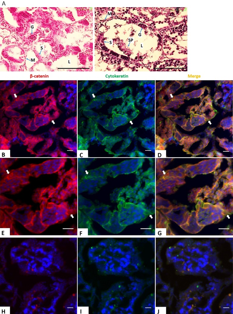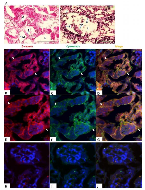 Figure 2. Expression of E-cadherin and β-catenin in Sertoli cells during testicular