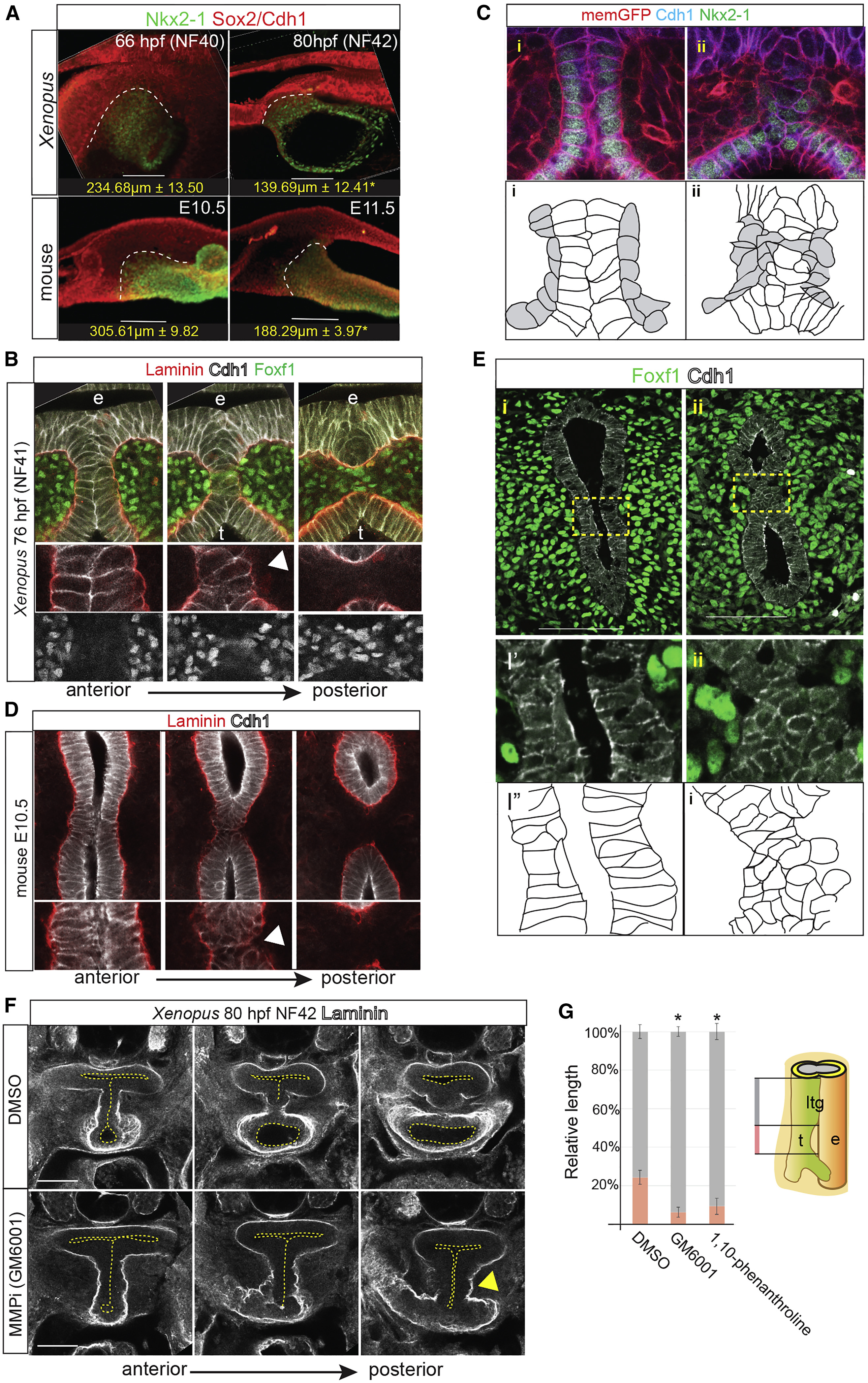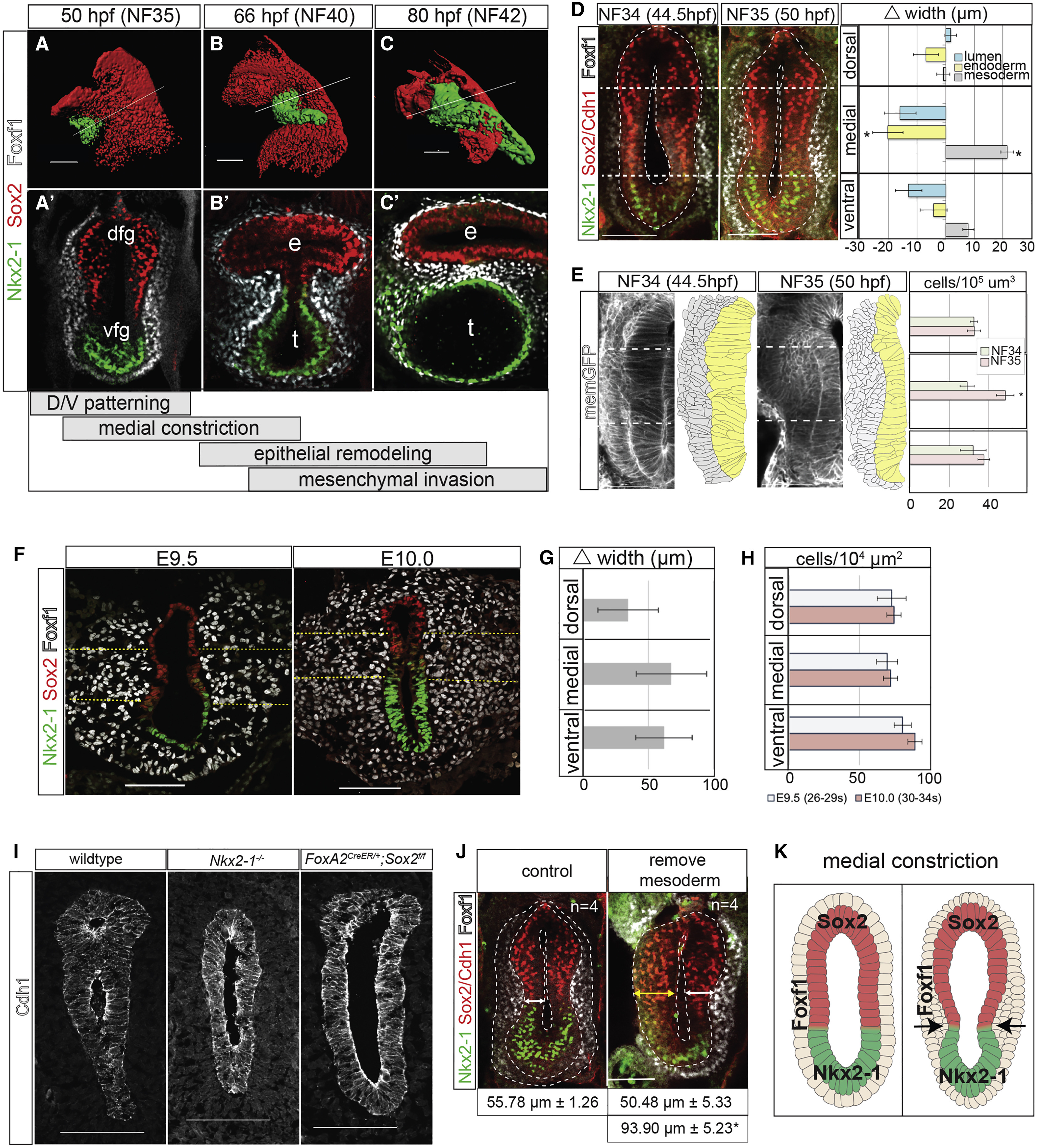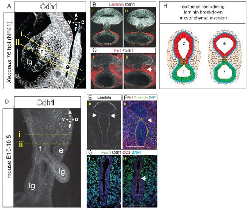 Genes referenced: casp3.2 cdh1 cdh3 fn1 foxa2 foxf1 gli2 gli3 nkx2-1 nkx2-5 prkci prkcz rab11a shh sox2 tec