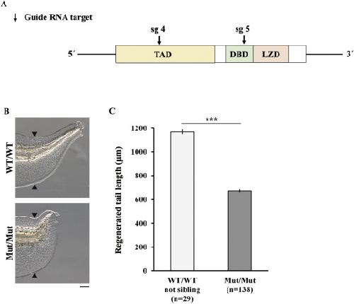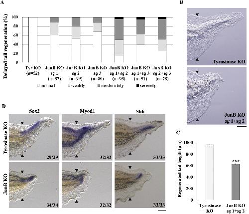 The AP-1 transcription factor JunB functions in Xenopus tail regeneration by positively regulating cell proliferation.