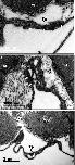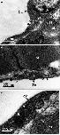 Figure 5. Telopodeâtelopode contact. Most of the CTs link with other CTs via connections between the far ends of their telopodes (AâC). Two types of telopodeâtelopode contacts are observed: (1) a gapâjunctionâlike structure coming into nanometerârange contact, in which some areas make nanometerârange contact and other areas have a structure resembling one to two gap junctions (white arrow); (2) a nanometerârange contact that does not have a wellâestablished junction at the far end of the telopodes in which two telopodes closely connect at a distance of approximately 1â2 nm (white small triangle). Scale bar: Size as shown in the figures. C: Collagen and extracellular matrix; M: Cardiomyocyte; Tp: Telopode |