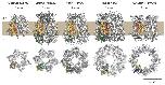 Figure 2—figure supplement 3. Inter-subunit interactions.Three major inter-subunit interfaces between two neighboring subunits (blue and red) are highlighted in orange ovals (left). Close-up views (right) show the highly-conserved residues mediating the inter-subunit interactions. |