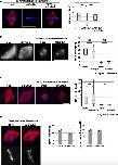 Figure 6. RECQL4 depletion or malfunction increases inter-kinetochore distance. (A) Cycled spindles are assembled as in Fig 3C and D and incubated for an additional 10 min with or without 6 μg/ml nocodazole. Samples were fixed, spun down on coverslips, stained for a kinetochore marker Ndc80 and DAPI, and analyzed by confocal microscopy. Maximum intensity projections are shown in the upper row. Single confocal slices (lower row) were used to detect kinetochore pairs (arrow heads) for further analysis. Quantitation shows the inter-kinetochore distance (right) and the relative angles of sister kinetochore pairs (left), measured with respect to the spindle pole to pole axis. n > 30 kinetochore pairs from > 6 structures. Note that after RECQL4 depletion, sister kinetochore pairs do not align to the pole to pole axis. Scale bar, 20 μm. ****P < 0.0001; **P < 0.01; NS (not significant) P > 0.05 (t test, two-tailed). (B) Immunofluorescence staining of control (GM00323, GM01864) and RothmundâThomson syndrome patient (AG05013, AG18371) fibroblasts with the kinetochore marker CREST and checkpoint marker BubR1. Scale bar, 5 μm. (C) Inter-kinetochore distance was measured in metaphase cells of control (GM00323, GM01864) and RothmundâThomson syndrome patient (AG05013, AG18371) fibroblasts based on CREST signals for the kinetochore pairs attached to microtubules (identified by the absence of the BubR1 signal) after 3D reconstruction. (n) indicates the number of kinetochore pairs measured per fibroblast line. P < 0.001 (t test, two-tailed). |