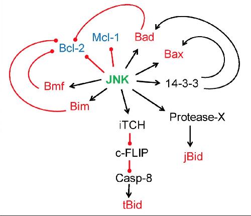 Yu, JNK suppresses apoptosis via phosphorylation of the proapoptotic Bcl-2 family protein BAD. 2004, Pubmed