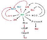 Genes referenced: bad bax bcl2l11 bid bmf daxx fh itch jun map3k1 mapk1 mapk14 mapk8 tp53