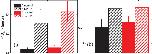 FIGURE 8:. (a) Changes of the mean value of the long-time diffusion coefficient DL for GM1s (black bars) and AChRs (red bars) after ATP depletion (DATP). (b) Changes of the mean value of the mobile ratio γ for GM1s (black bars) and AChRs (red bars) after DATP. The statistics of all the data sets for GM1s in a and b were obtained from 30 ATP-depleted cells in three separate experiments and those for AChRs were obtained from 40 ATP-depleted cells in three separate experiments. The error bars indicate the SD of the measurements. The effect of ATP depletion is shown with the shaded bars in comparison with the data from the untreated (normal) cells shown in solid bars. |