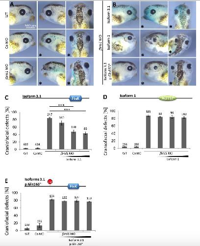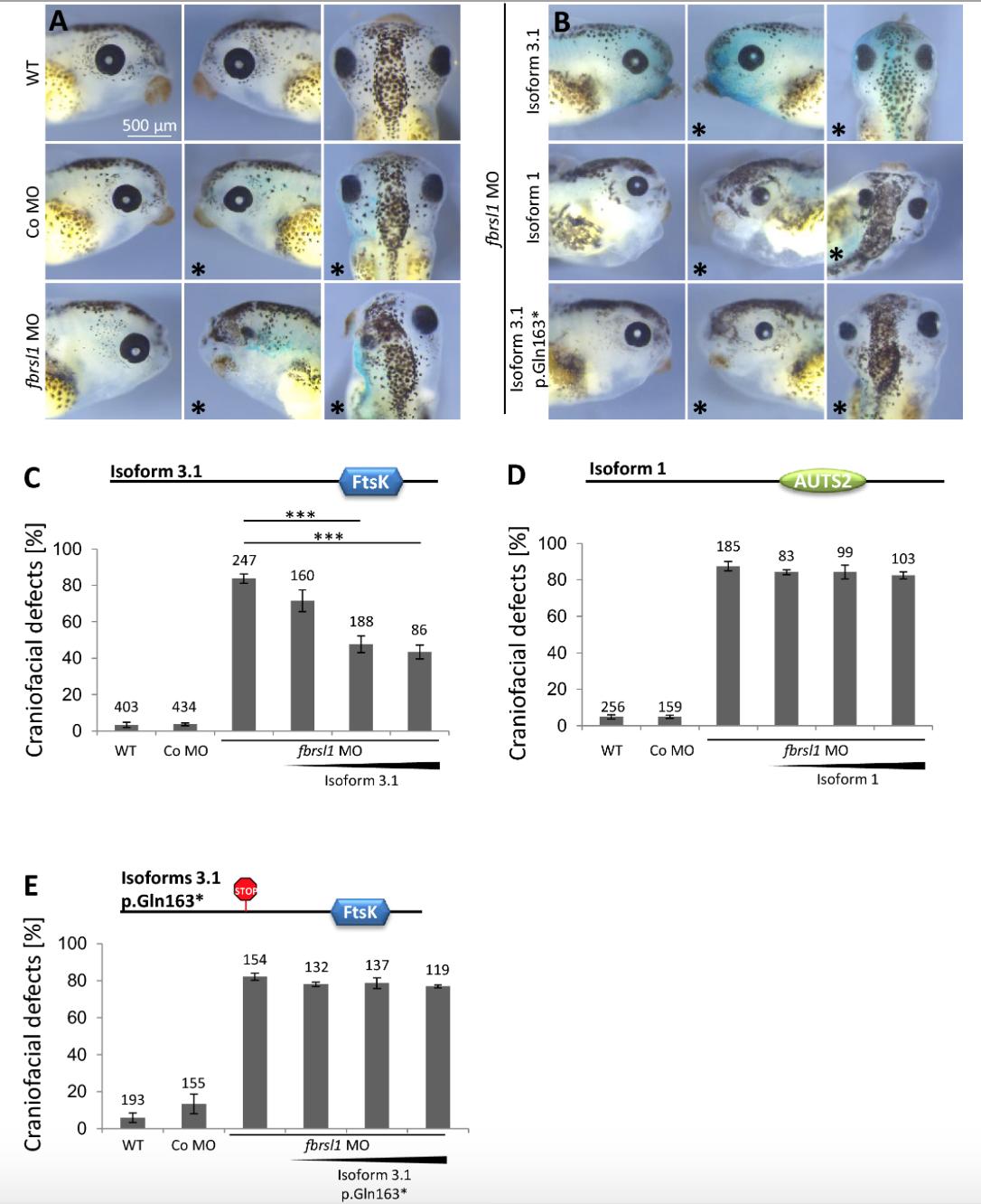 Fig. 7. The short human N-terminal FBRSL1 isoform 3.1 can rescue craniofacial malformations induced by Fbrsl1 depletion in Xenopus laevis.